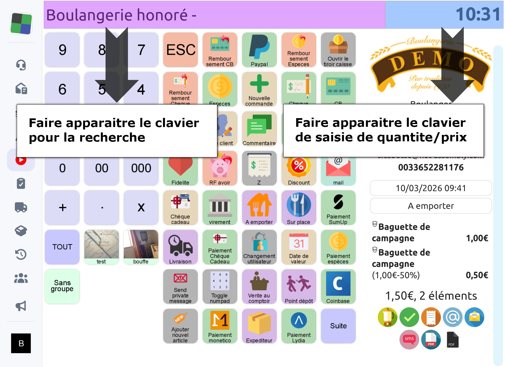 💡 Sur smartphone ou tablette, vous pouvez faire apparaitre le clavier numérique en cliquant sur la date en haut à droite de l'écran, depuis l'interface de vente
